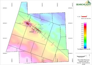 - A comprehensive summary of past exploration prior to Searchlight’s work on Robinson Creek Claims, including 70 drill holes completed by Hudbay and Saskatchewan Mining Development Corporation in the 1940’s and 1980’s.